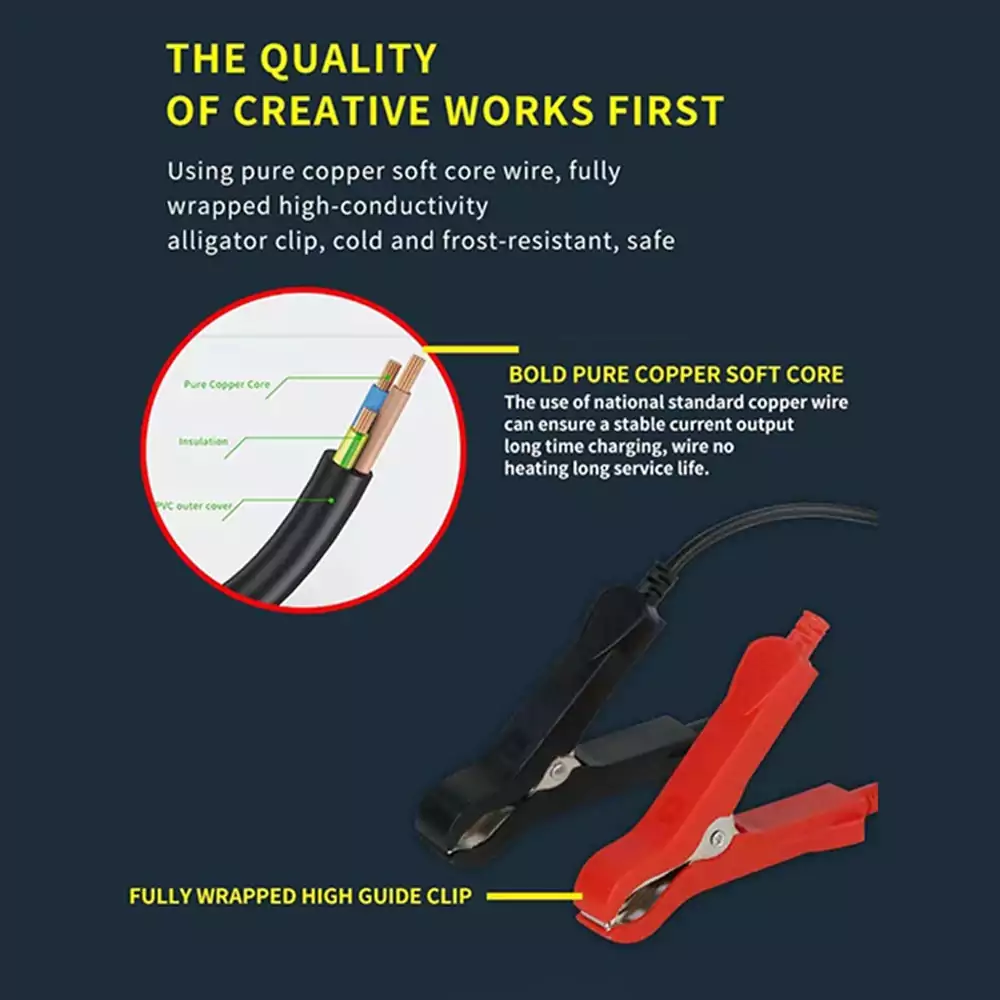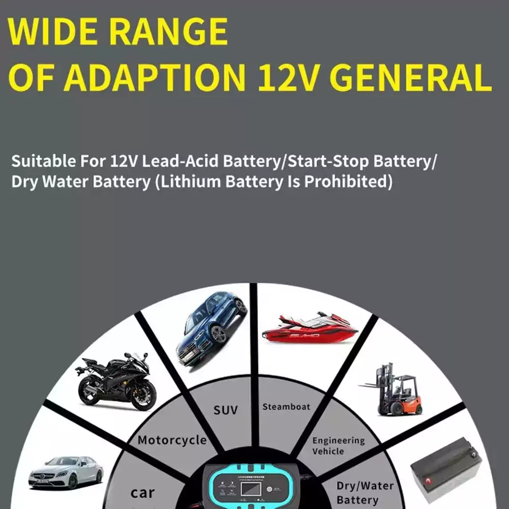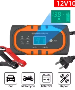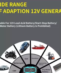 Offrez une seconde vie à vos batteries 12V avec ce chargeur intelligent et puissant, conçu pour tous types de batteries plomb-acide (AGM, GEL, SLA, Flooded) sur voitures, motos, tondeuses, SUV, bateaux, etc.
